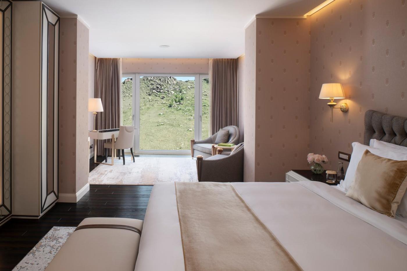 Presidential Suite. Guests will have a special experience as this suite provides a sauna. This spacious suite is comprised of 1 living room, 1 separate bedroom and 2 bathrooms with a bath and free toiletries. In the well-fitted kitchen, guests will find a stovetop, a dishwasher, a microwave and an electric kettle. The air-conditioned suite offers a flat-screen TV with cable channels, soundproof walls, a minibar, executive lounge access as well as mountain views. The unit offers 2 beds. ;